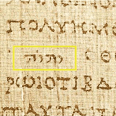 Si le recours aux nomina sacra ne semble pas d’ordre pratique, peut-être faut-il en chercher l’origine dans les usages scripturaux du Judaïsme antique ? Là aussi, les espoirs du chercheur s’avèrent vite déçus : aucun des manuscrits préchrétiens de la LXX5 ne présente de telles abréviations. On trouvera tout au plus le tétragramme divin inscrit en hébreu dans un papyrus grec6 du premier siècle av. J.-C., sans qu’on puisse établir de filiation entre les deux techniques – nous le verrons plus tard, il y a de lieu de penser que le premier nomen sacrum n’est pas celui de Dieu.